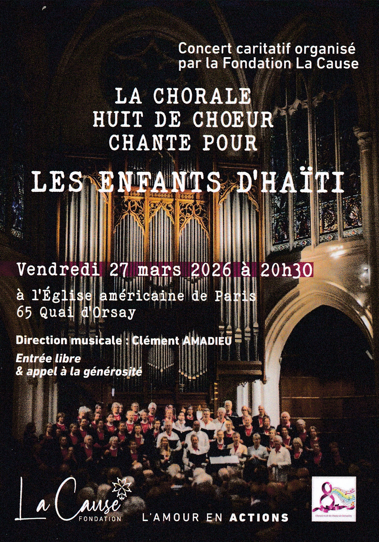 - Un concert aura lieu le 27 mars 2026.à 20h30 en l'Eglise Américaine 63 quai d'Orsay 75007 Paris avec notamment au programme La Messe brève de Charles Gounod, ainsi que des oeuvres de Leonard Bernstein, de Mozart, Ogden, Mendelson, Bortnianski, Leontovich.